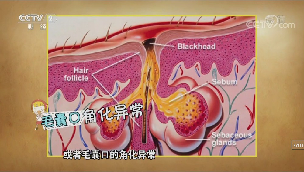 趙邑稱:“最基本的原因是遺傳因素,有些患者生來就愛長痤瘡,為什么,因?yàn)楦改缚赡茉谀贻p的時(shí)候長過,體質(zhì)遺傳;第二就是毛囊口的堵塞,它是因?yàn)楸砥さ幕蛘呙铱诘慕腔惓#瑫衙锥缕饋,里面的東西很難分泌出來!