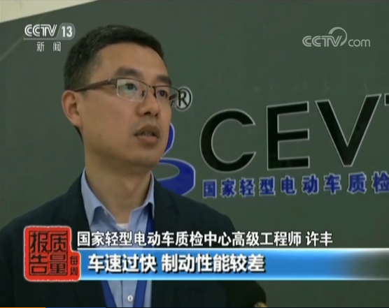 國家輕型電動(dòng)車及電池質(zhì)檢中心高級(jí)工程師 許豐:主要發(fā)現(xiàn)的風(fēng)險(xiǎn)呢,最突出的還是表現(xiàn)在騎行安全風(fēng)險(xiǎn),大部分的電動(dòng)滑板車的車速過快,制動(dòng)性能較差,還有個(gè)別的車,它的車把、車身、車體的強(qiáng)度不過關(guān)。那么在電器安全風(fēng)險(xiǎn)方面呢,主要是發(fā)現(xiàn)了有四個(gè)批次的鋰離子電池這個(gè)安全的風(fēng)險(xiǎn),主要出現(xiàn)的問題是在重物沖擊的時(shí)候,電池發(fā)生了起火爆炸的現(xiàn)象。
