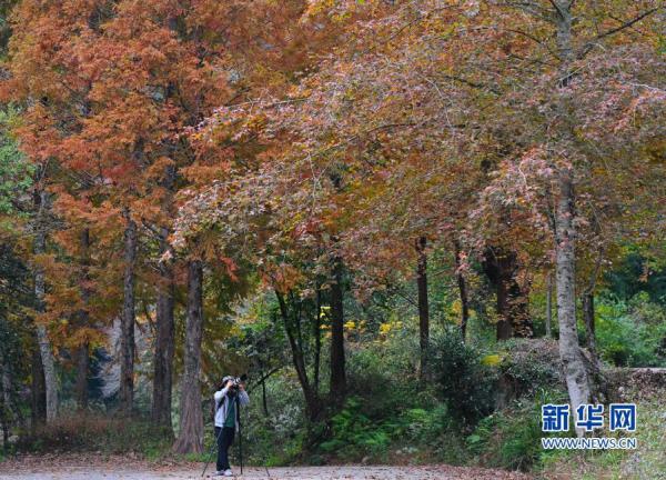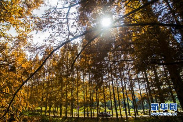11月20日,游客在福建省三明市將樂縣國家級自然保護區(qū)水杉大道游覽。新華社記者 宋為偉 攝