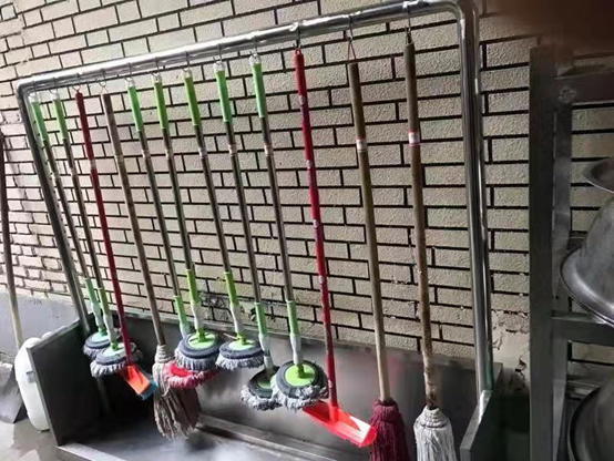 清洗煙罩專用拖把,有明確標(biāo)識,統(tǒng)一懸掛在操作間室外東南角