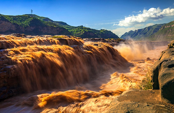 進入7月份以來,受上游降雨和水庫調(diào)節(jié)放水的影響,黃河水量也日漸充沛起來。逢汛期,壺口瀑布水量大增,濁流滾滾奔騰而下,主副瀑布連成一線,磅礴的氣勢更是蔚為……
