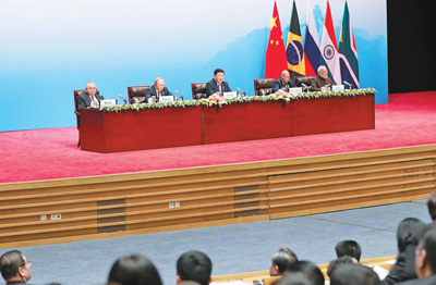 二是助力金磚國家經(jīng)濟(jì)發(fā)展。要順應(yīng)新一輪科技革命和產(chǎn)業(yè)革命潮流,敢于先行先試,為金磚國家經(jīng)濟(jì)發(fā)展闖出一片天地,注入新的動(dòng)能。要順應(yīng)經(jīng)濟(jì)全球化大勢(shì),同其他國家的企業(yè)深化合作,帶動(dòng)新興市場(chǎng)國家和發(fā)展中國家普遍發(fā)展。