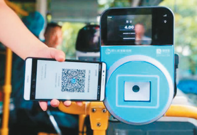 | 民眾乘坐交通工具出行時使用手機(jī)支付。 |