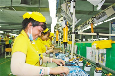 | 越南前江省龍江工業(yè)園內,浙江方正電機越南子公司的生產線上,當地員工正在工作。 |