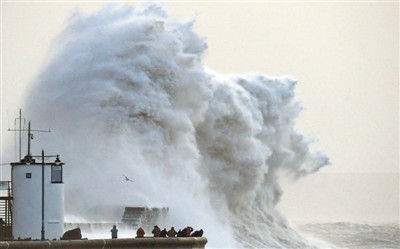 | 1月3日,在英國波斯考爾,“埃莉諾”風(fēng)暴掀起巨大的海浪。新華社發(fā) |