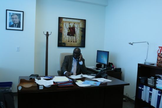 秘書(shū)長(zhǎng)辦公室政治組在聯(lián)合國(guó)大廈第38層,與古特雷斯秘書(shū)長(zhǎng)在同一層辦公。秘書(shū)長(zhǎng)辦公室政治組有10名工作人員,主任哈西姆是塞內(nèi)加爾人,曾與古特雷斯在聯(lián)合國(guó)難民署共事11年,深得其信任。哈西姆的辦公室墻上除了掛著非洲藝術(shù)作品,還掛著古特雷斯的大幅照片,看得出他們的關(guān)系非同一般。