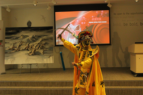 現(xiàn)場表演國粹藝術(shù)京劇變臉(攝影 盛楚宜)
