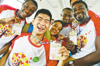 | 去年暑假,江蘇大學(xué)“大眼睛”和“桑梓心”支教團(tuán)的50多名中外大學(xué)生奔赴安徽金寨、貴州六盤水、江西吉安等地,開展為期一個月的公益支教活動,為貧困山區(qū)的留守兒童送去關(guān)懷。圖為中外大學(xué)生志愿者開心出征支教。人民視覺 |
