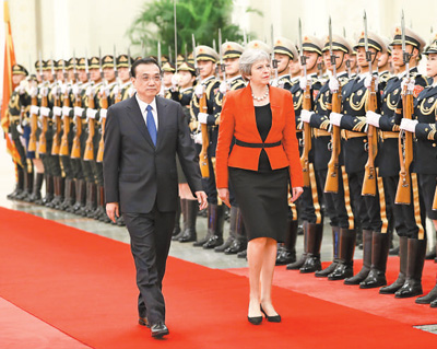 本報北京1月31日電 (記者趙成、杜一菲)國務(wù)院總理李克強(qiáng)1月31日下午在人民大會堂同來華進(jìn)行正式訪問的英國首相特雷莎·梅舉行中英總理年度會晤。
