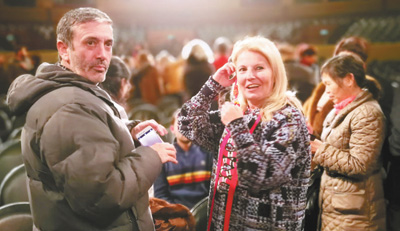 羅馬僑胞蔣鴻建夫婦是和外孫女一同來(lái)的。到意大利30多年,蔣鴻建笑妻子錢(qián)曉楓,“只要有中國(guó)藝術(shù)團(tuán)的演出,每場(chǎng)必看,而且都早早到場(chǎng)”。錢(qián)曉楓則“揭發(fā)”蔣鴻建:“這次他就是為了帶外孫女才來(lái)!北M管外孫女才2歲,蔣鴻建一本正經(jīng)地告訴記者:“要讓孩子從小了解中國(guó)文化。別看才2歲,她看得懂,還會(huì)說(shuō)上海話呢!