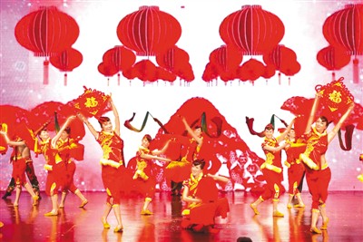 | 中國歌劇舞劇院演員表演的舞蹈《張燈結(jié)彩》。 |