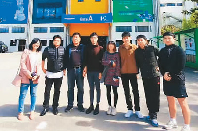 | 沈惟強(qiáng)(右三)和老師與同學(xué)們參加第十屆清州國(guó)際藝術(shù)展時(shí)的合影。 |