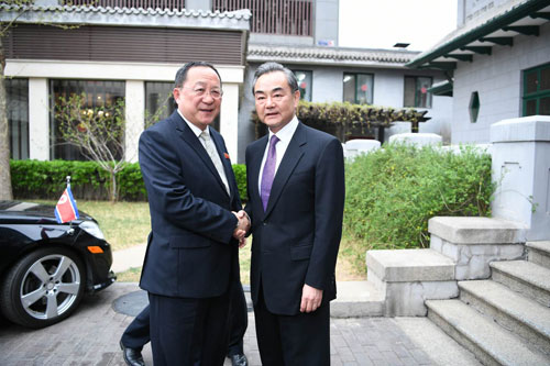 人民網(wǎng)北京4月3日電 據(jù)外交部網(wǎng)站消息,3日下午,國(guó)務(wù)委員兼外交部長(zhǎng)王毅會(huì)見正在北京過(guò)境的朝鮮外相李勇浩。