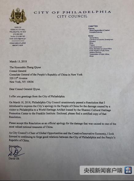 目前,該作案男子被逮捕后保釋,正在等待法庭的審判,面臨最高可達(dá)有期徒刑30年的判決。而另一方面,費(fèi)城市政府在日前通過了一份決議,正式向中方進(jìn)行書面道歉。