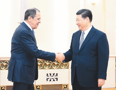 國家主席習(xí)近平23日在人民大會(huì)堂會(huì)見俄羅斯外長拉夫羅夫。