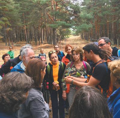 在西班牙瓜達(dá)拉馬國家公園,導(dǎo)游安赫爾不時(shí)停下腳步,為游客講解沿途遇到的各種動(dòng)植物的種類、特性等。