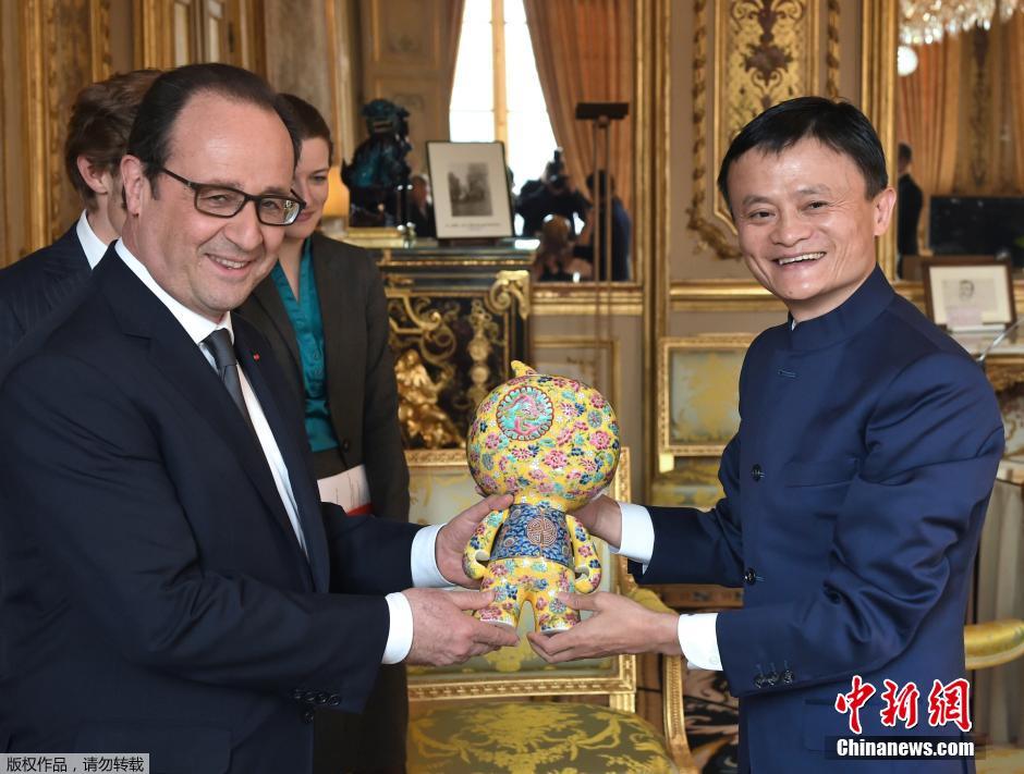當(dāng)?shù)貢r(shí)間2015年3月18日,法國巴黎,阿里巴巴集團(tuán)CEO馬云抵達(dá)愛麗舍宮,與法國總統(tǒng)奧朗德舉行會(huì)談。當(dāng)?shù)貢r(shí)間2015年3月18日,法國巴黎,阿里巴巴集團(tuán)CEO馬云抵達(dá)愛……