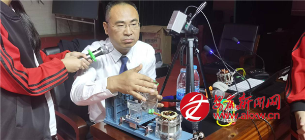 講座的亮點之一是關(guān)于“三相交流鼠籠式異步電動機”的現(xiàn)場實驗展示。嵇教授首先通俗易懂地闡釋了該類型電動機作為現(xiàn)代工業(yè)核心的重要地位及基本原理,隨后現(xiàn)場演示實驗過程,逐步解析其內(nèi)部結(jié)構(gòu)、旋轉(zhuǎn)磁場的形成機制,以及“鼠籠”轉(zhuǎn)子實現(xiàn)電能與機械能高效轉(zhuǎn)換的原理。抽象難懂的電磁學(xué)知識,在直觀的演示與生動的講解中變得清晰可感。嵇教授還引導(dǎo)同學(xué)們思考該項技術(shù)在各行各業(yè)的廣泛應(yīng)用,切身感受科技對社會發(fā)展的深遠(yuǎn)影響。這一環(huán)節(jié)有效激發(fā)了同學(xué)們對工程技術(shù)的興趣與對科學(xué)原理的探索熱情。