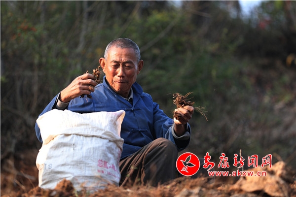 進(jìn)入冬季,是一年的農(nóng)閑時節(jié)。楊孝景卻閑不下來,在親友的幫襯下,開挖收獲6分多地的白術(shù)藥材。他說:“今年能在邊角地里收獲白術(shù)500余斤,按照市場每斤2元左右估計(jì),能為家里多增收1000多元。”